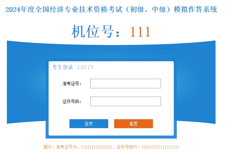 考生需在指定位置输入准考证号和证件号码,点击"登录"按钮进入确认界面。在模拟系统中可使用测试证件号登录体验流程。