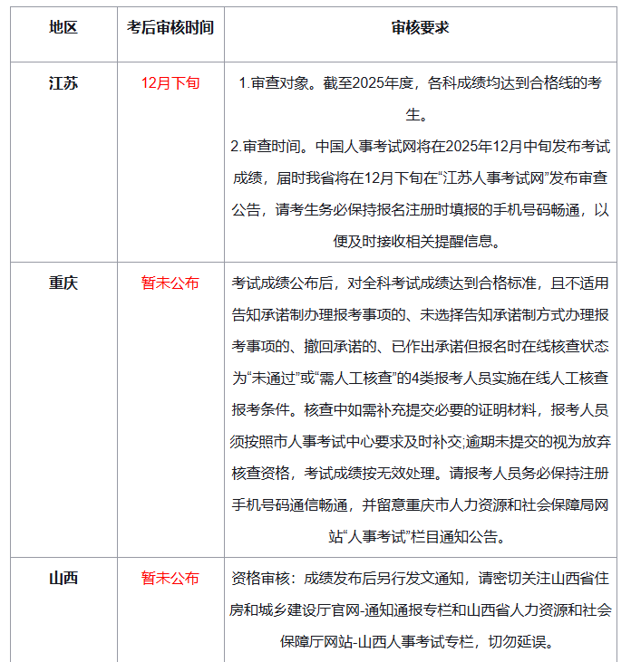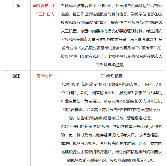 ②仅考后审核的省份:浙江、广东、山西、重庆(4地)