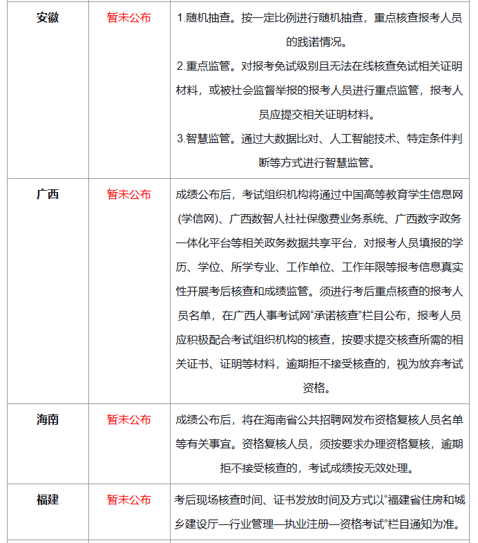 ③需考前初审+考后复审的省份:江苏、安徽、广西、海南、福建、河南、云南、西藏、陕西、宁夏、贵州(11地)