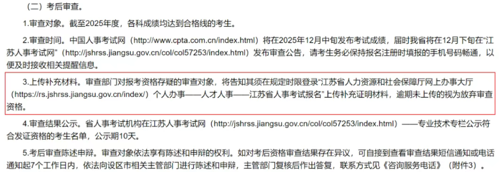 以江苏为例,需要在规定时间内登录江苏省人力资源和社会保障厅网上办事大厅“个人办事——人才人事——江苏省人事考试报名”,上传补充证明材料。