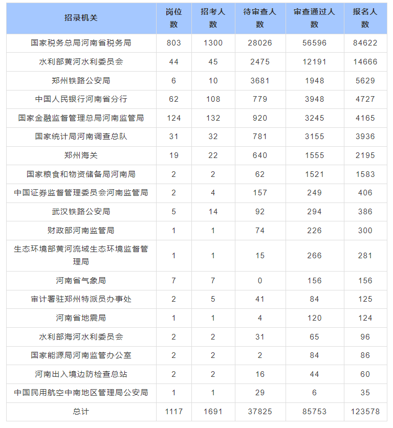 2026国考河南地区报考人数最多的十大部门【截至22日17时】