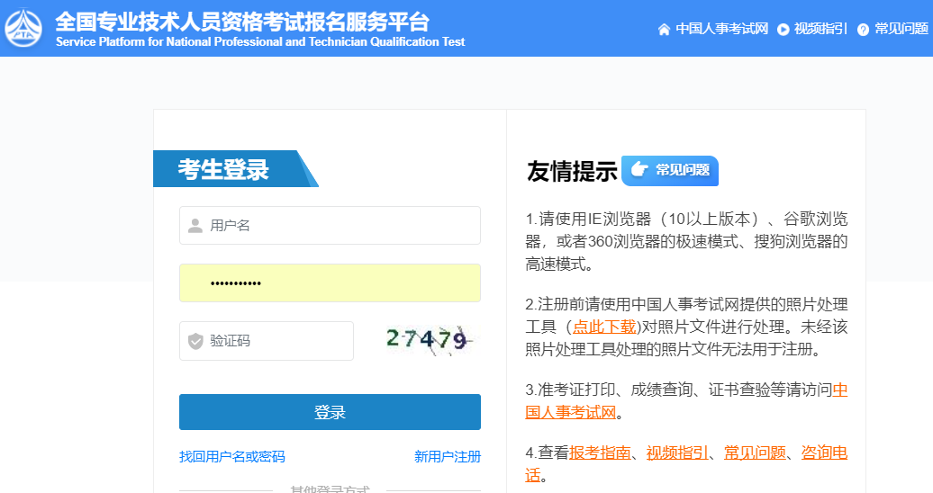 需要提醒考生的是,报名时必须使用18位号码的第二代居民身份证,考试时携带的身份证号码必须与报名时的身份证号码一致。此外,持有效期内的临时身份证可以参加考试,不可以持护照和驾驶证参加考试。