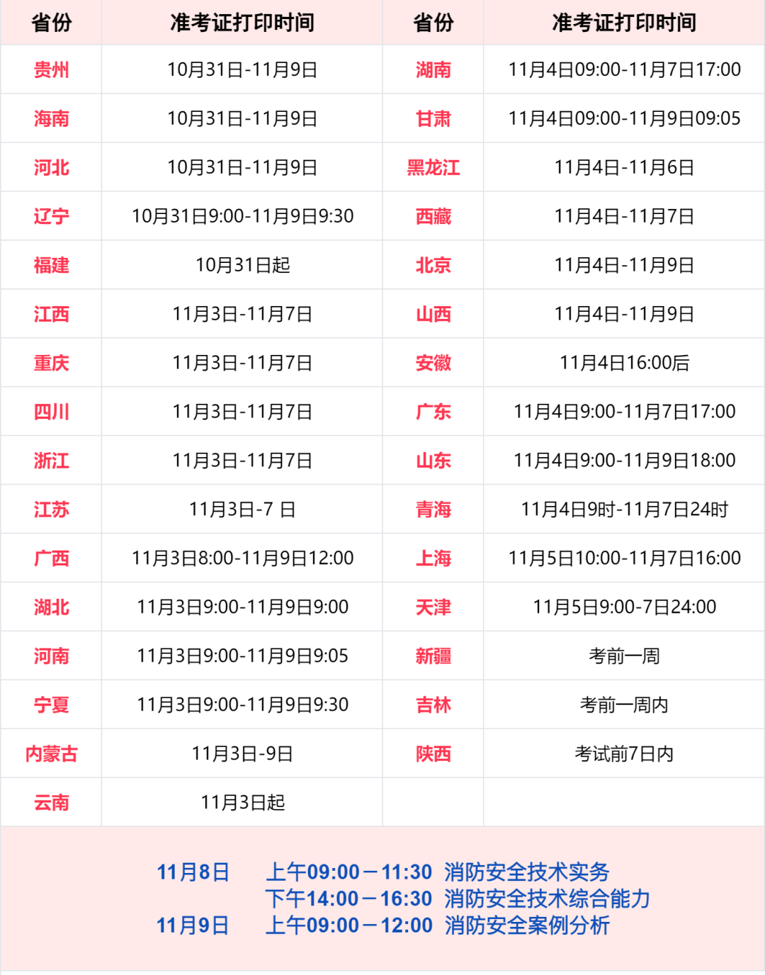* 开通准考证打印通道≠立即能打印,打印时间参考上方「全国各地准考证打印时间」。