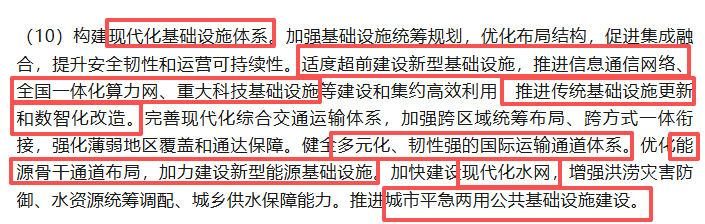 这里的重点是:新基建、传统基建、运输体系、新能源、水网、平急两用。