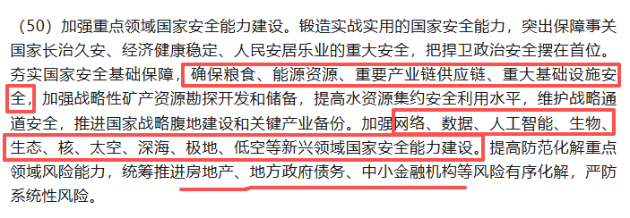 确保粮食、能源资源、重要产业链供应链、重大基础设施安全。