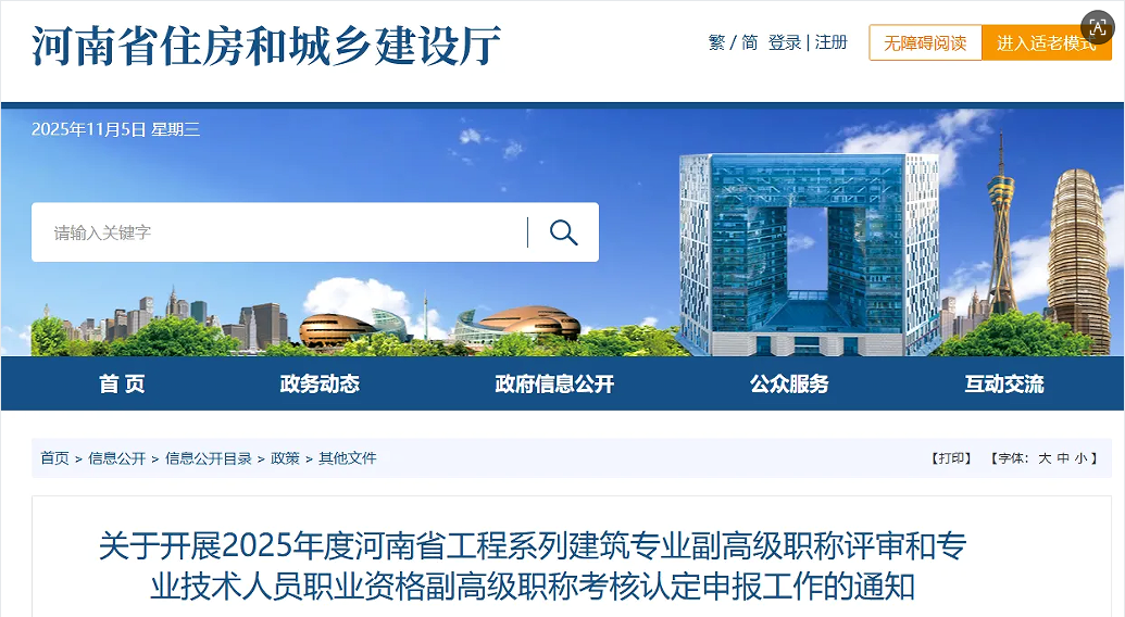 近日,河南住建厅发布了《关于开展2025年度河南省工程系列建筑专业副高级职称评审和专业技术人员职业资格副高级职称考核认定申报工作的通知》,持有一建证书有机会直接考核认定为副高级职称,个人申报时间为2025年10月26日—11月10日。