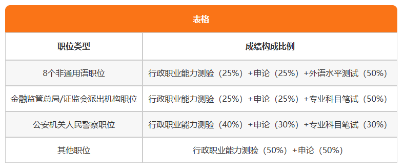 不同职位的笔试成绩合成方式存在差异,具体如下表所示: