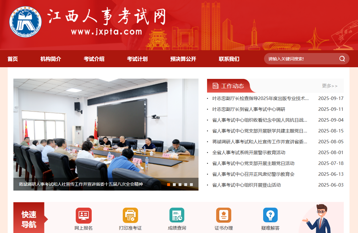 2026年江西省公务员考试的报名网站为江西人事考试网(http://www.jxpta.com/),考生需在该网站完成注册、报名、缴费等全流程操作。进入官网后,点击首页“公务员考试”栏目,选择“2026年度考试录用公务员”专题,即可跳转至报名系统。此外,微信公众号“江西组工微讯”也会同步推送公告内容,考生可关注该公众号,以便及时获取招考信息。
