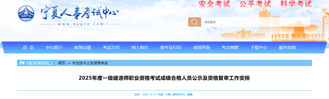 宁夏、贵州、浙江杭州正在进行2025年一级建造师考后资格审核,请相关考生及时上传材料,以免耽误证书领取。