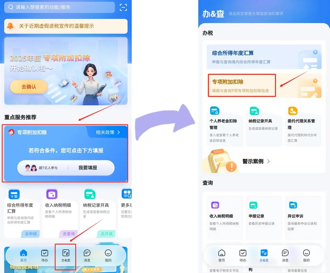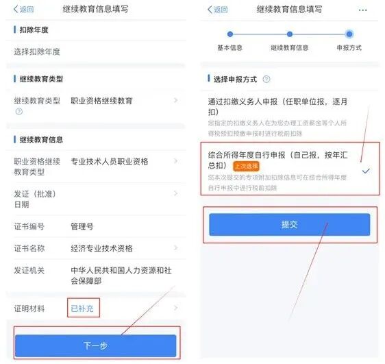 ② 首页点击【专项附加扣除填报】→【继续教育】;