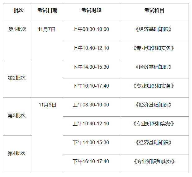 2026年中级经济师考试为全国统一机考,时间定为11月7日-8日,分4批次进行(具体场次以准考证为准)。