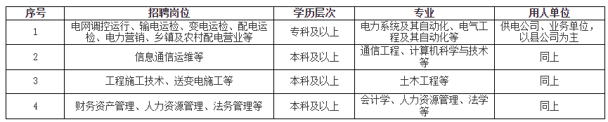 供电公司、业务单位招聘数量约250人,最终招聘数量将根据上级单位核定情况相应调整。