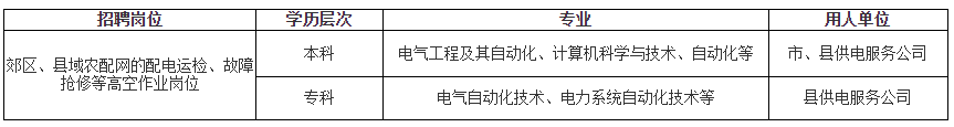 供电公司、业务单位,以县级供电公司为主。录用毕业生与供电公司或业务单位签订劳动合同、建立劳动关系。