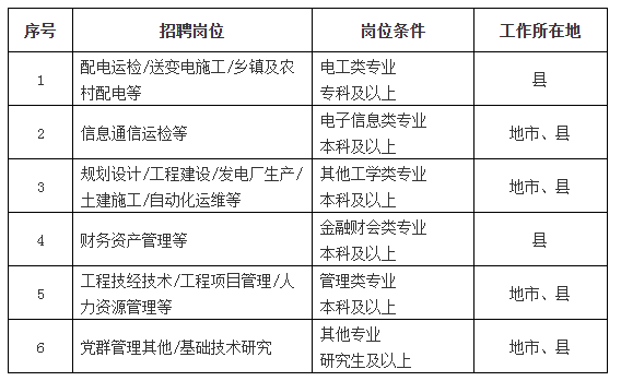 4.具有正常履行职责的身体条件和心理素质,符合《公务员录用体检通用标准(试行)》和电力企业岗位工作要求。毕业生入职后须在生产一线岗位工作,为保障人身、电网和设备安全,经指定医疗机构鉴定患有色盲、恐高症、严重心血管等疾病不适合电力企业岗位。