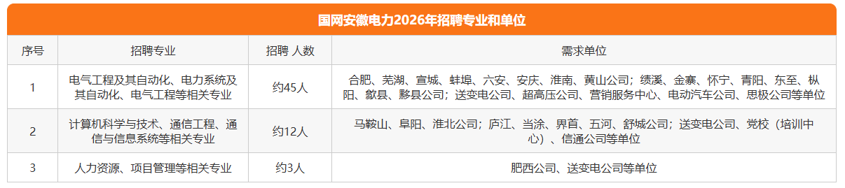 1.安徽公司所属各供电公司、业务单位招聘需求及相关要求