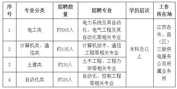 3.应聘的国(境)外留学生一般应于2025年7月1日至2026年6月30日期间毕业,并于2026年8月31日前取得国家教育行政部门确认的硕士及以上学历认证证书。供电公司及业务单位招聘专业为电工类、财会类、计算机类、通信类;三新供电服务公司招聘专业为电工类、计算机类、通信类。本科阶段所学专业应与研究生阶段相同或相近,或为公司所需的专业。