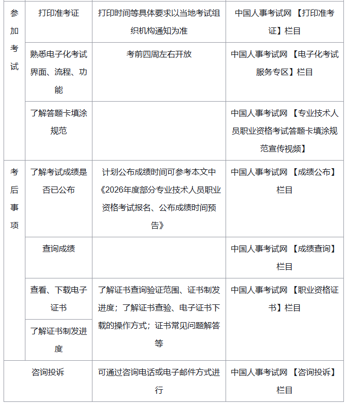 2026年度部分专业技术人员职业资格考试报名、公布成绩时间预告