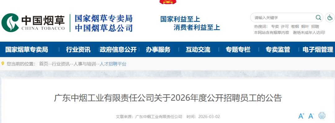 http://www.tobacco.gov.cn/gjyc/zpxx/202603/1cc9bf59e29b4de18f062437a887b017.shtml